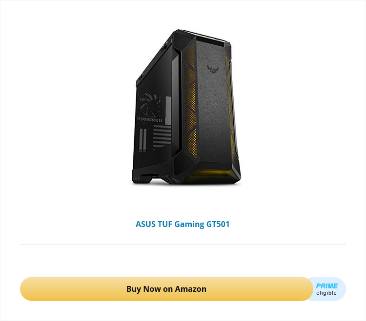 The TUF Gaming GT501 is a mid-tower PC case for up to E-ATX motherboards. Built like an armored tank, it boasts a galvanized steel construction with scratch-resistant panels and a 4mm thick tempered glass window. For easy transport, two woven-cotton handles fix to the top.