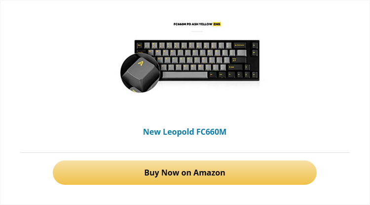 The board we’ve linked below is the updated version of the Leopold FC660M. It follows the same design as the older model, however, there are some differences. As you can see, it features a sleek new set of “ash-yellow” keys that contrast with the case for a very slight pop.