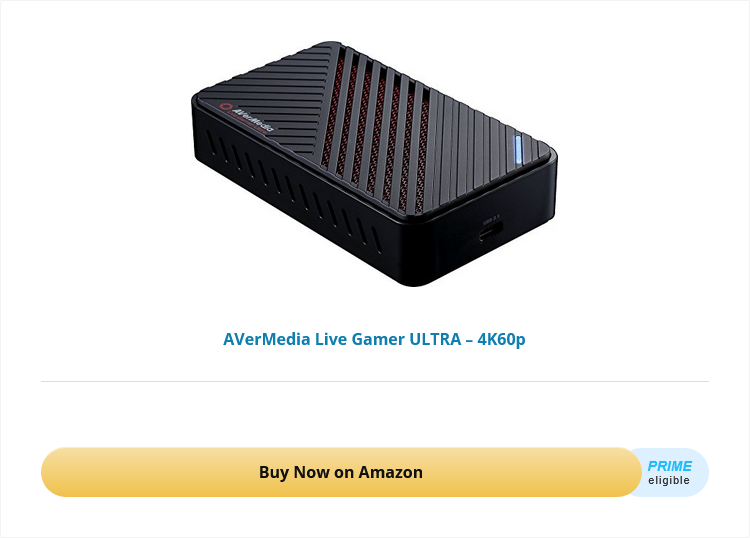 The AVerMedia Live Gamer Ultra is a very similar device to the Elgato Game Capture HD60 S+. With this card, you can expect a 4k 60p high dynamic range (HDR) pass-through before recording in a max resolution of 4Kp30, or the standard 1080p, 60 fps.