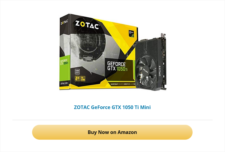 The ZOTAC GeForce GTX 1050 Ti Mini is a SFF graphics card engineered with serious gamers in mind. Although it is based on the older Pascal architecture, it runs reasonably fast and is energy-efficient. With this card, you get 768 CUDA cores capable of a 1417 MHz boost, plus 4GB of VRAM.