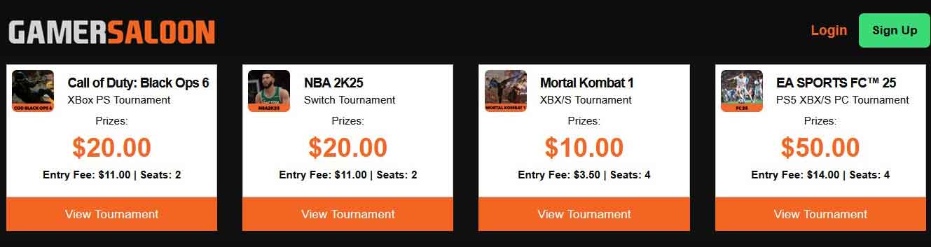 To participate in tournaments with Gamersaloon, simply sign up, and add funds to your account.