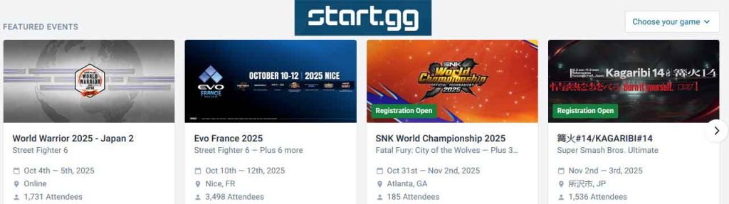 Start.gg is an esports platform empowering bottom-up growth of competitive communities. The site uses its own free-to-use software that provides tournament-organizing tools for event organizers. It also hosts a large number of weekly online events with thousands of competitors