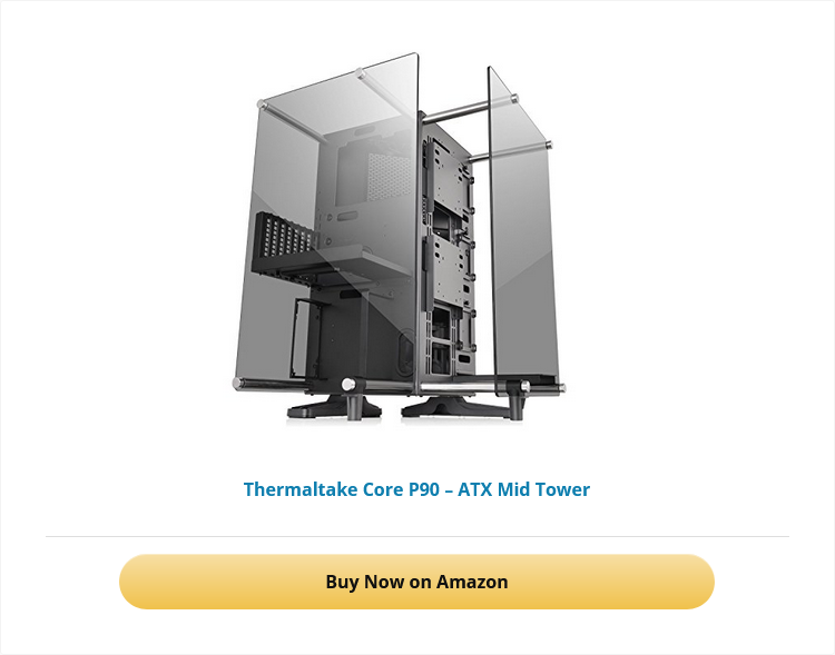 The Core P90 is an open frame, ATX glass chassis that allows you to flaunt your build and water-cooling skills. It does this by having a unique, two-sided PC case design that separates the motherboard from the cooling system. This offers plenty of flexibility for multiple configurations.