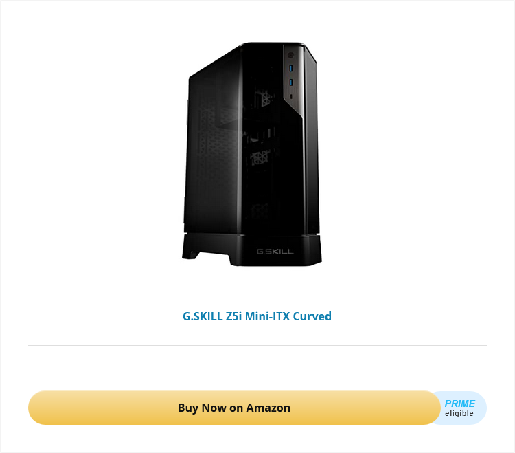 The G.SKILL Z5i is an ambitious ITX case with two standout features. The first is a curved tempered glass enclosure, which due to the high production costs is quite rare among cases. The second is an extra-long accessory bay that can accommodate triple-slot graphic cards