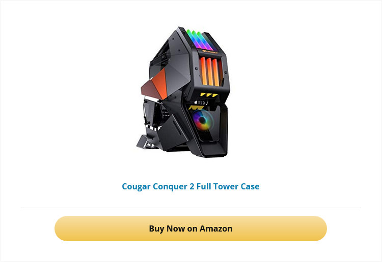 The Cougar Conquer 2 breaks away from the traditional case with its imaginative Superbike design. Due to the integrated RGB “headlights” on the front, and dynamic panel-work on the sides, it almost looks good enough to race away on.