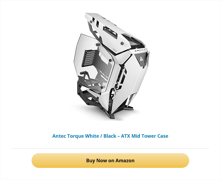 The Antec Torque is a forward-leaning, open-air case that best resembles a Transformer. Comprised of fourteen aluminum panels and two large tempered glass panels on both sides, it flaunts an aggressive and bold appearance while still assigning plenty of space in the back.